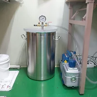급하게 몰드에 넣고 진공을 하고 있는데.. 진공하던 상태로 굳어버렸다.